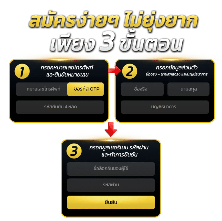 ในส่วนของข้อมูลที่ต้องกรอก คุณจะต้องระบุชื่อ-นามสกุลจริง เบอร์โทรศัพท์ที่ใช้งานจริง และอีเมลที่ใช้งานอยู่ ที่สำคัญอย่าลืมตั้งรหัสผ่านที่รัดกุมและจดจำได้ง่าย แนะนำให้ใช้ตัวอักษรผสมตัวเลขเพื่อความปลอดภัยสูงสุด หลังจากกรอกข้อมูลครบถ้วนแล้ว ให้กดยืนยันการสมัคร ระบบจะส่ง OTP ไปยังเบอร์โทรศัพท์ของคุณ นำรหัส OTP มากรอกเพื่อยืนยันตัวตน